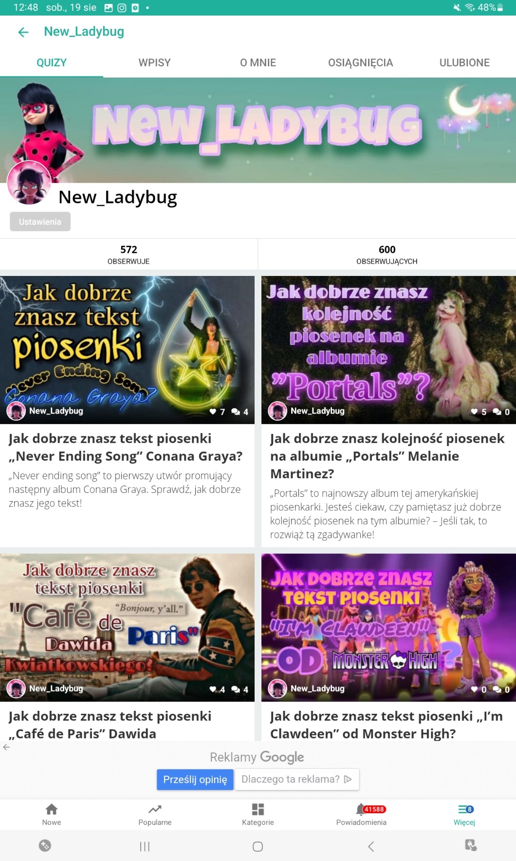 💗Nie planuję w najbliższym czasie dodawać nowych quizów, bo chcę się skupić na pisaniu opowiadań i ogólnie na pisaniu! 😀🤩💖❤️