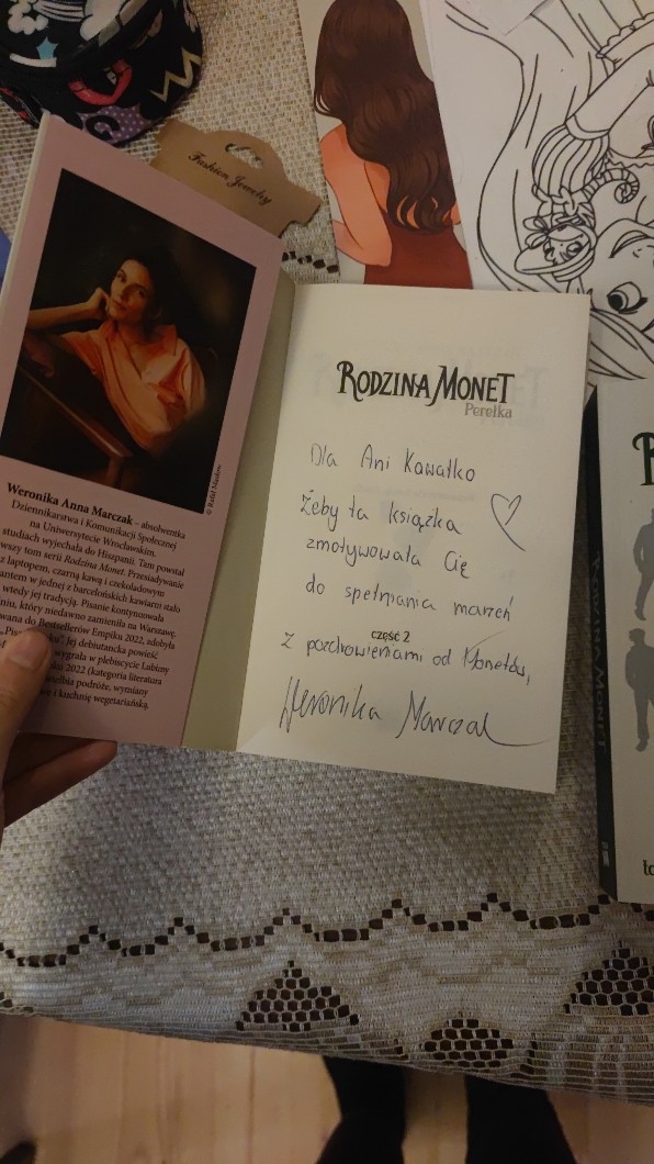 AUTOR•Nie wiem czy kogoś to interesuje, ale mam autograf od autorki książki Rodzina Monet i okazało się, że ta autorka to znajoma mojej kuratorki, serio.