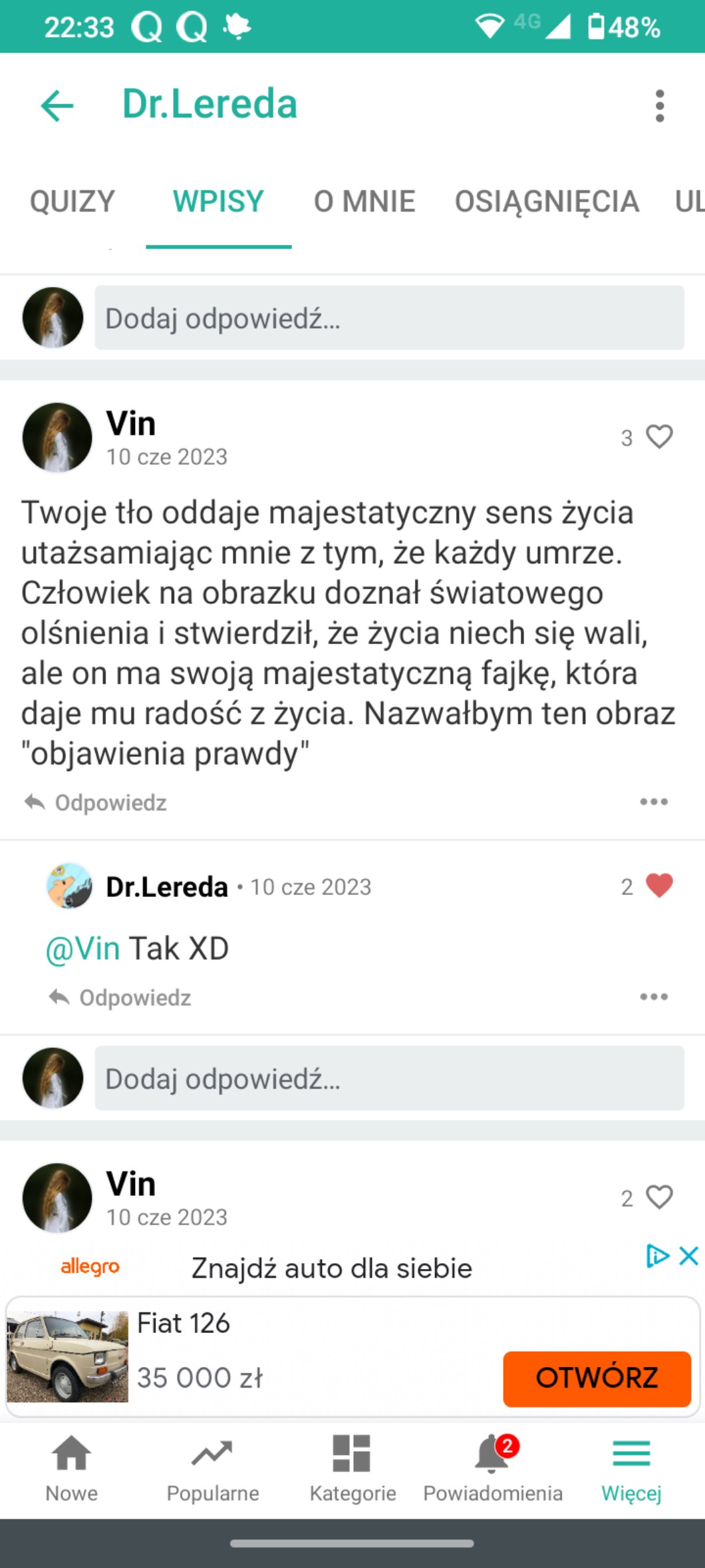 Przy pomocy wpisów możesz zadać autorowi pytanie, pochwalić go, poprosić o pomoc, a