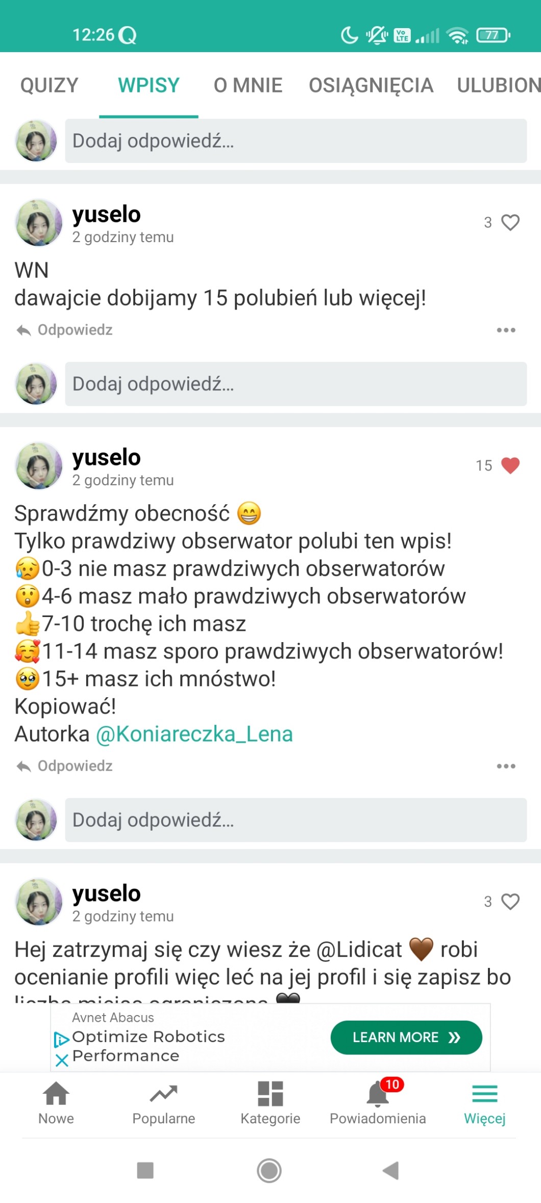 Przy pomocy wpisów możesz zadać autorowi pytanie, pochwalić go, poprosić o pomoc, a