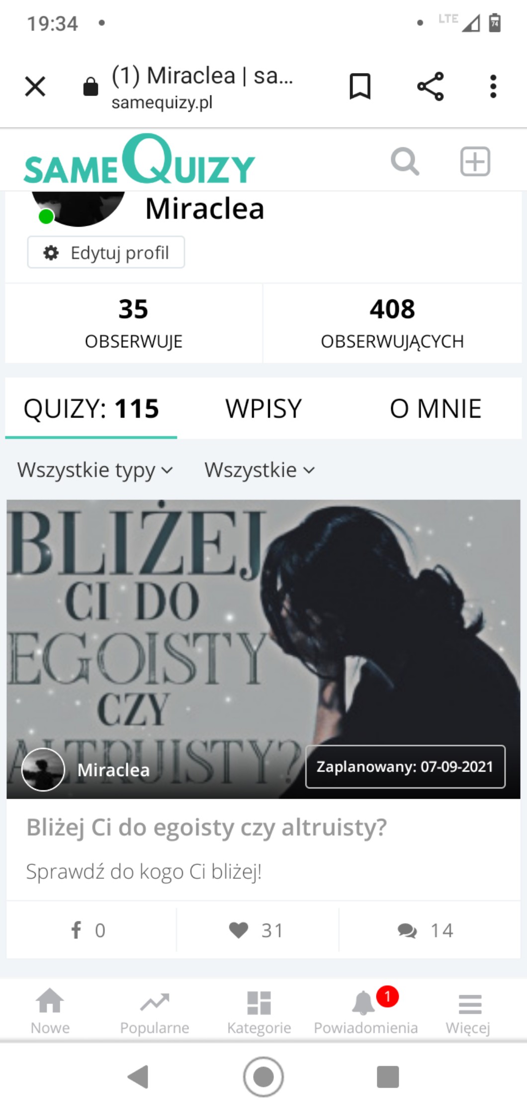 AUTOR•Ogólnie to przez jeden dzień przez ten quiz przewinęły się wszystkie statusy łącznie ze sprawdzonym.