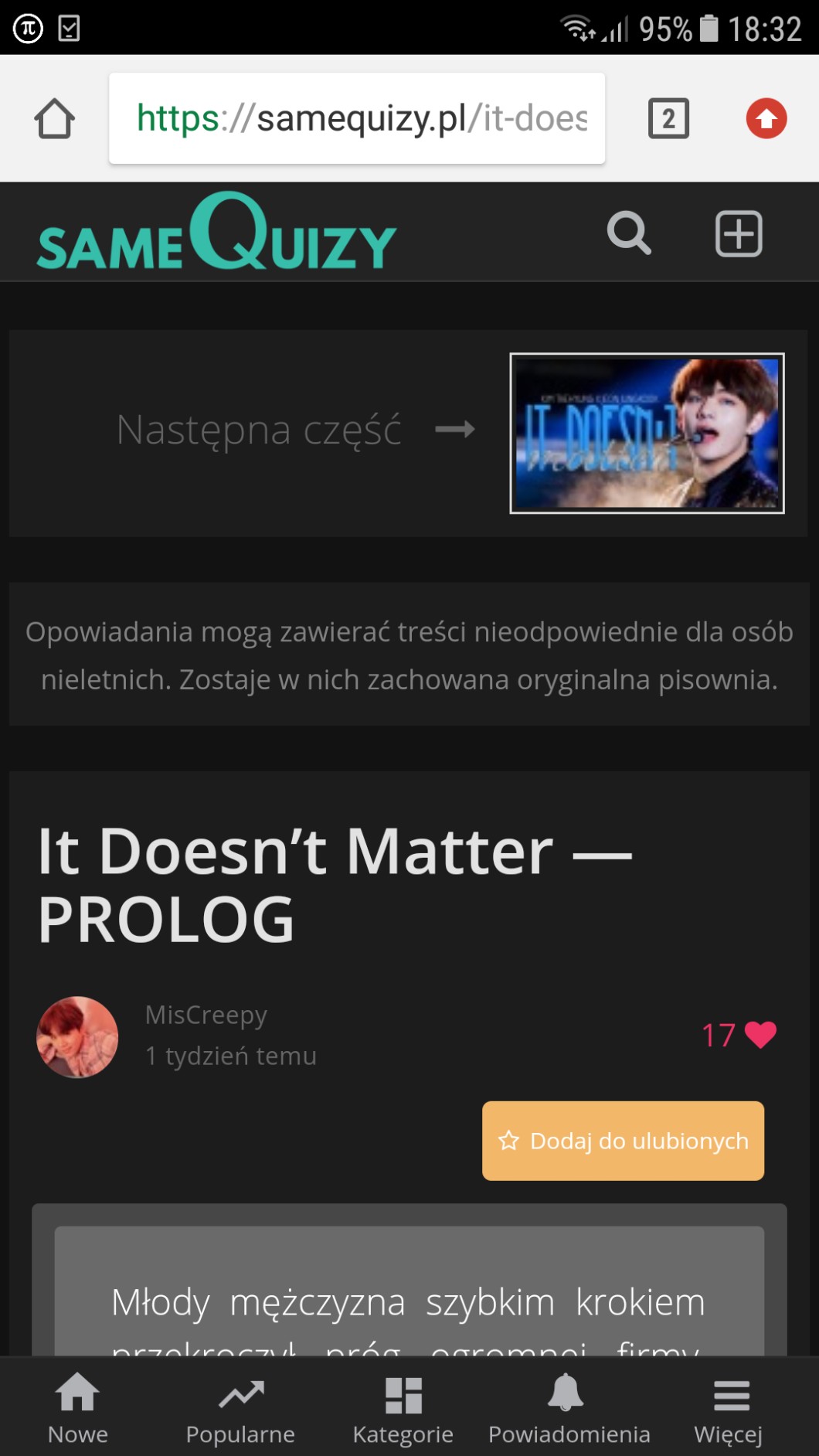 Strasznie przyjemnie piszę mi się „It Doesn’t Matter” i szczerze zakoch*** się w tym opowiadaniu.