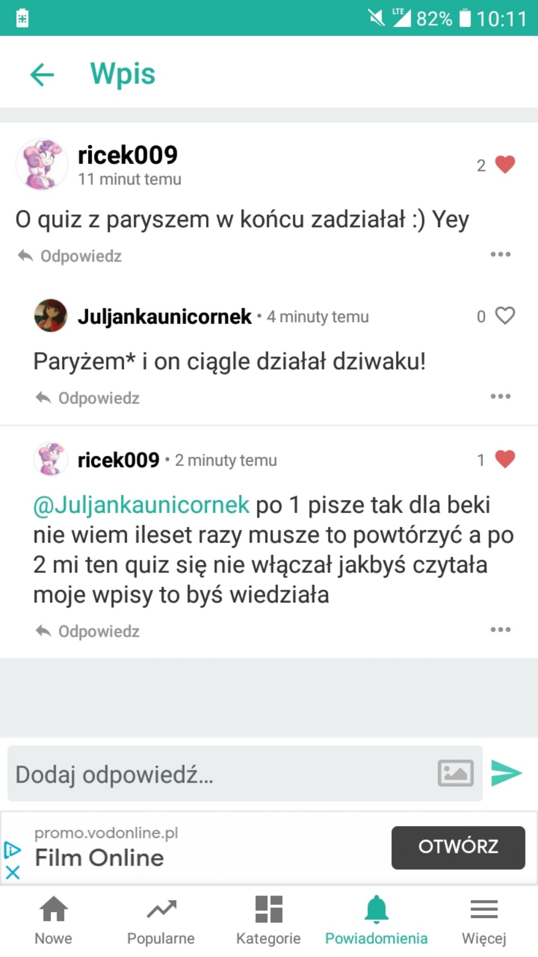 " Odpowiedz" - osoba ta dostanie powiadomienie*