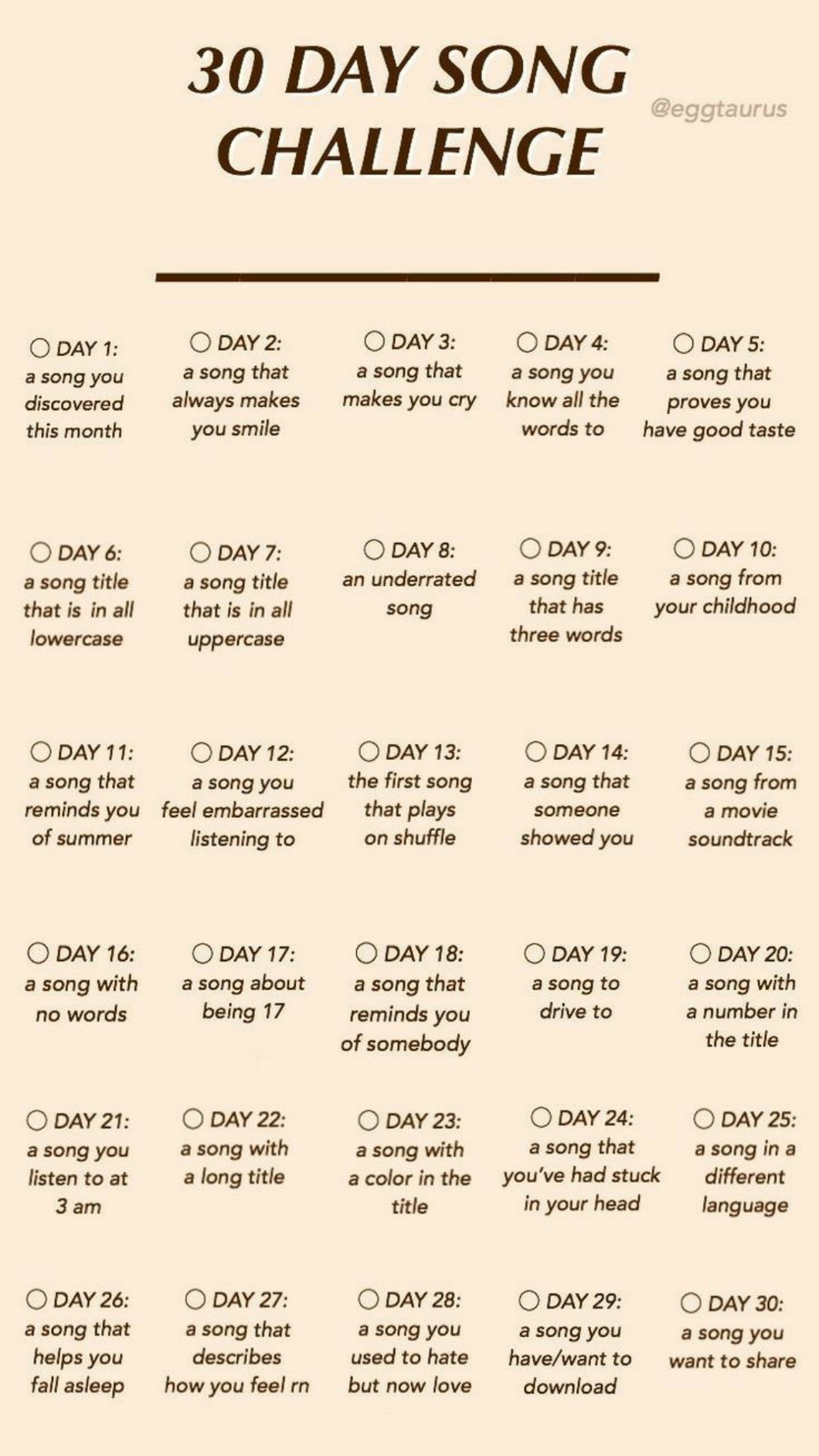 Stwierdziłam przed chwilą, że zacznę 30 DAYS CHALLENGE! I będzie to 30 DAY SONG CHALLENGE! Mam nadzieję że kategoria Wam się podoba💙 Bo właśnie przeglądałam Pinteresta i znalazłam takie cudo🤭
