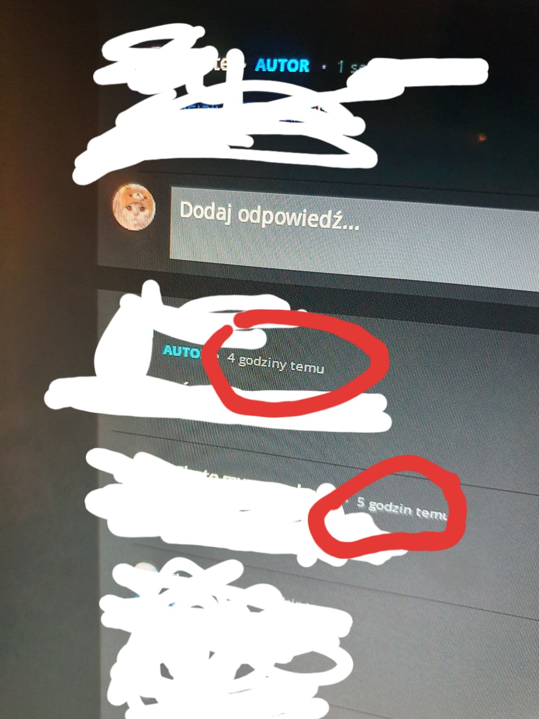 • AUTOR@Luna.Magic @psinka. No wpis został dodany ,,5 godz temu" a ktoś napisał odp. 6 godz
