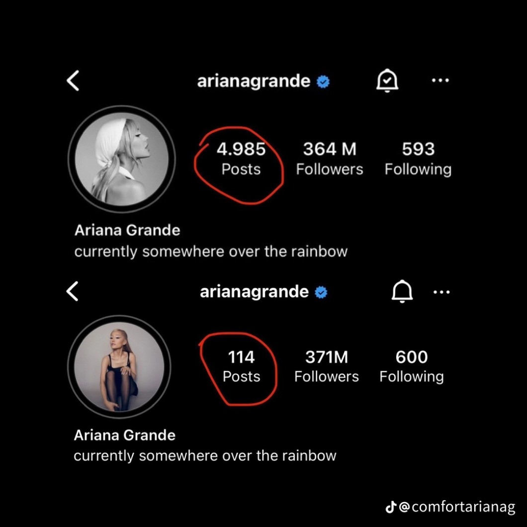 AUTOR•LUDZIE ARIANA USUNĘŁA PRAWIE WSZYSTKIE POSTY. Jej ,,pierwszy" post jest z 2021. Usunęła nawet post ślubny, który miał 28 mln polubień i był rekordowym postem co do polubień postów wstawionych przez kobietę. Zaczynam bać się związek Ari i Daltona, bo Dalton niedawno usunął swoje konto na ig więc może chce z jakiegoś powodu zniknąć z internetu. Szkoda też że usunęła te posty, bo lubiłam do nich zaglądać.