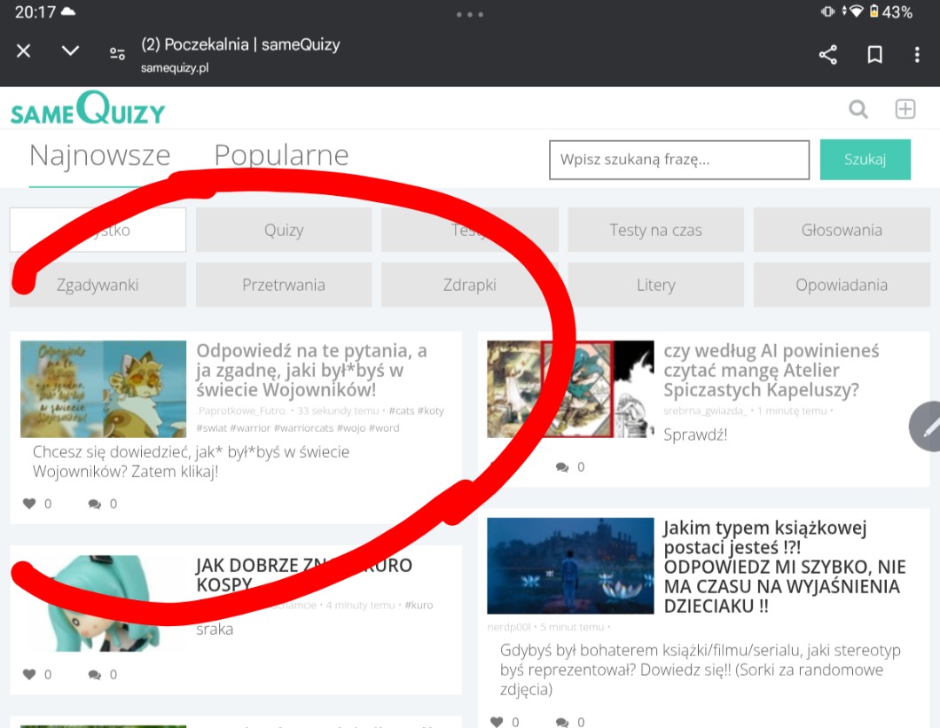 @Dinozaur_Pimpek to w zakładce ,,najnowsze” nie na sg. Chciałabym żeby moderatorzy dodawali więcej quizów na sg