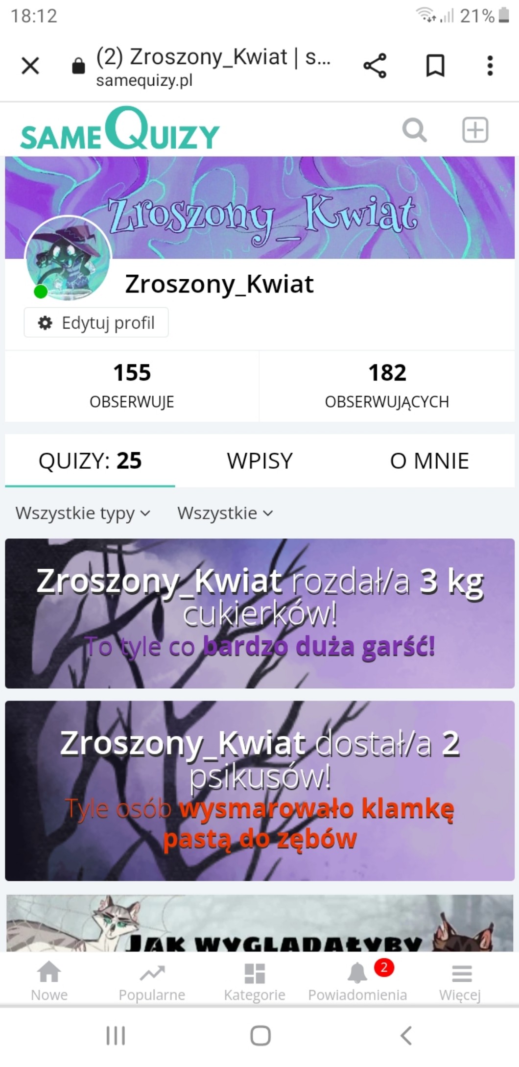 Chcem wam tylko polecić super miłą osóbkę z fajnymi quizikami której brakuję kilka obsików do 200. Wpadajcie do @Wojak._.!