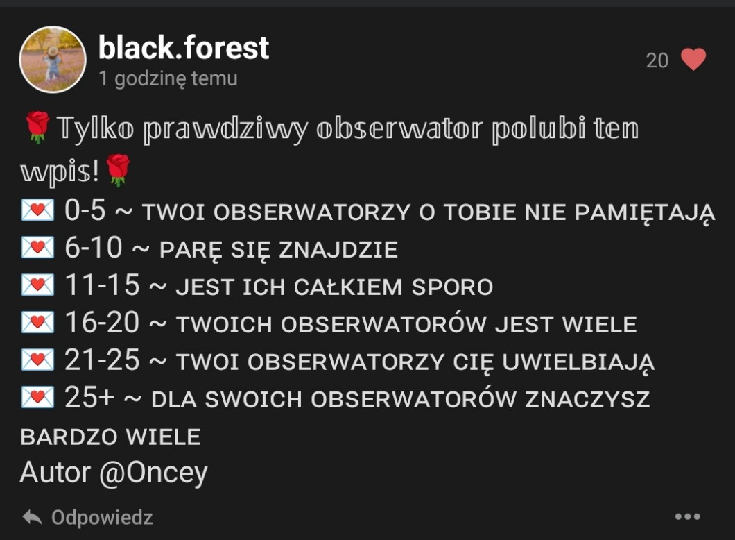 AUTOR•🩷Przepraszam że o to proszę, ale polubcie wpis "prawdziwych obserwatorów", bo chciała bym dostać osiągnięcie Bloger🩷