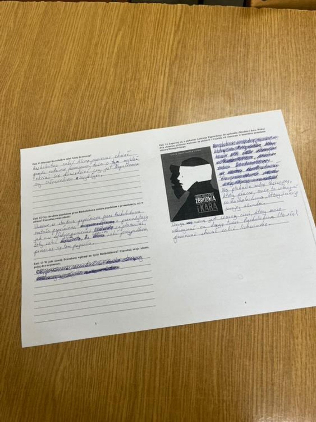 AUTOR•miałam kartę pracy teraz z zbrodnia i kara błagam na Boga aby 3 chcoiaz była błagam wsyztsko napisałam na jednym zadaniu nie wiedziałam a na ostatnim był plakat i dwa elementy jakie widzimy i zauważyłam maskę oraz siekiere ale tak była też łza co nie a łza to taki dobre odwołanie się matko czemu ja tego nie widziałam ale koleżanka zrobiła zdj i chce aby sprawdzila to szybko babka