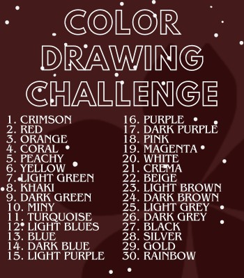 AUTOR•Czy mogłabym robić quiz, ale zamiast tego zmarnowałam czas na zrobienie listy do rysunkowych wyzwań, które opublikowałam na pinie? Otóż tak. Autokorekta mi pozmieniała niektóre kolory eh…