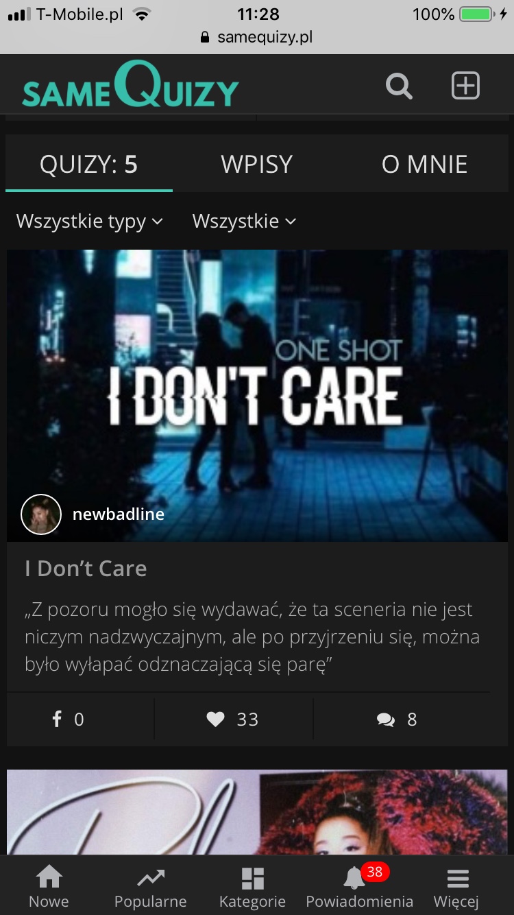 Muszę przyznać, że troszkę ociągam się z napisaniem swojej części do one shota (do tematu Body Shot nawet nie wracajmy, przepraszam, przepraszam, przepraszam). Albo nazwę to tak dość popularnie… „nie mam weny”😂. Nie no, wenę mam zawsze, ale nie zawsze jest TEN moment, żeby pisać🙈. I zdradzę też, że trochę nas, a w szczególności mnie, martwi to, że I Don’t Care nie traci edycji tak jak poprzednie opowiadania. Mam nadzieję, że to ma szansę się jeszcze zmienić🙈.