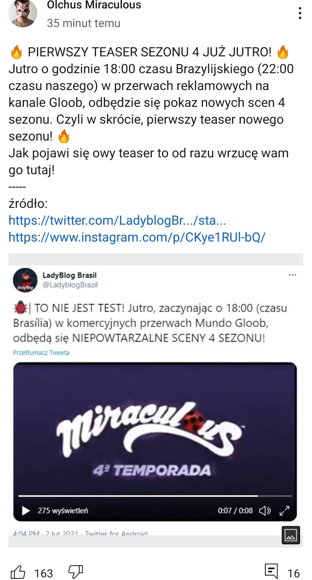 AUTOR•A teraz szybki newsik dla fanów miraculum! :D