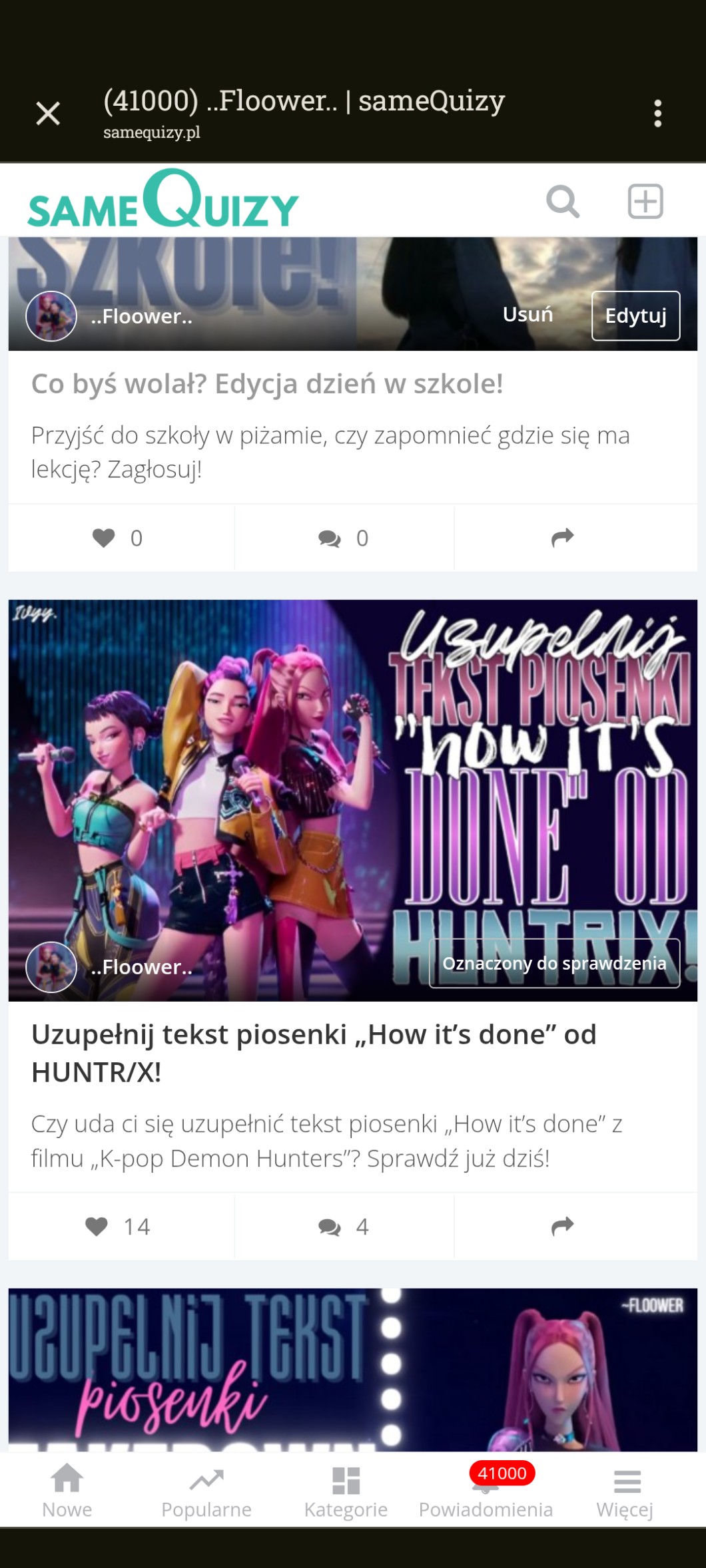 „𝑾𝒊𝒕𝒂𝒋, 𝒎𝒐𝒋 𝒅𝒓𝒐𝒈𝒊! 𝑷𝒓𝒛𝒚𝒔𝒛𝒆𝒅ł𝒆𝒎 𝒏𝒂 𝒕𝒆𝒏 𝒑𝒓𝒐𝒇𝒊𝒍𝒆𝒌, 𝒃𝒐 𝒎𝒂𝒔𝒛 𝒄𝒖𝒅𝒐𝒘𝒏𝒆 𝒒𝒖𝒊𝒛𝒚, 𝒄𝒊𝒆𝒌𝒂𝒘𝒆 𝒘𝒑𝒊𝒔𝒚, 𝒐𝒓𝒂𝒛 𝒋𝒆𝒔𝒕𝒆𝒔 𝒘𝒂𝒓𝒕𝒐𝒔𝒄𝒊𝒐𝒘𝒂 𝒐𝒔𝒐𝒃𝒂! 𝑼𝒘𝒊𝒆𝒍𝒃𝒊𝒂𝒎 𝑪𝒊𝒆, 𝒏𝒊𝒈𝒅𝒚 𝒔𝒊𝒆 𝒏𝒊𝒆 𝒛𝒎𝒊𝒆𝒏𝒊𝒂𝒋! 𝑻𝒘𝒆 𝒒𝒖𝒊𝒛𝒚 𝒛𝒂𝒔𝒍𝒖𝒈𝒖𝒋𝒂 𝒏𝒂 𝒔𝒈, 𝒂 𝑻𝒚 𝒏𝒂 𝒎𝒊𝒍𝒊𝒐𝒏𝒚 𝒐𝒃𝒔! 𝑾𝒌𝒍𝒆𝒋 𝒕𝒐 𝒏𝒂 𝒏𝒂𝒋𝒍𝒆𝒑𝒔𝒛𝒆 𝒑𝒓𝒐𝒇𝒊𝒍𝒆! 𝑴𝒊ł𝒆𝒈𝒐 𝑫𝒏𝒊𝒂 <𝟑"