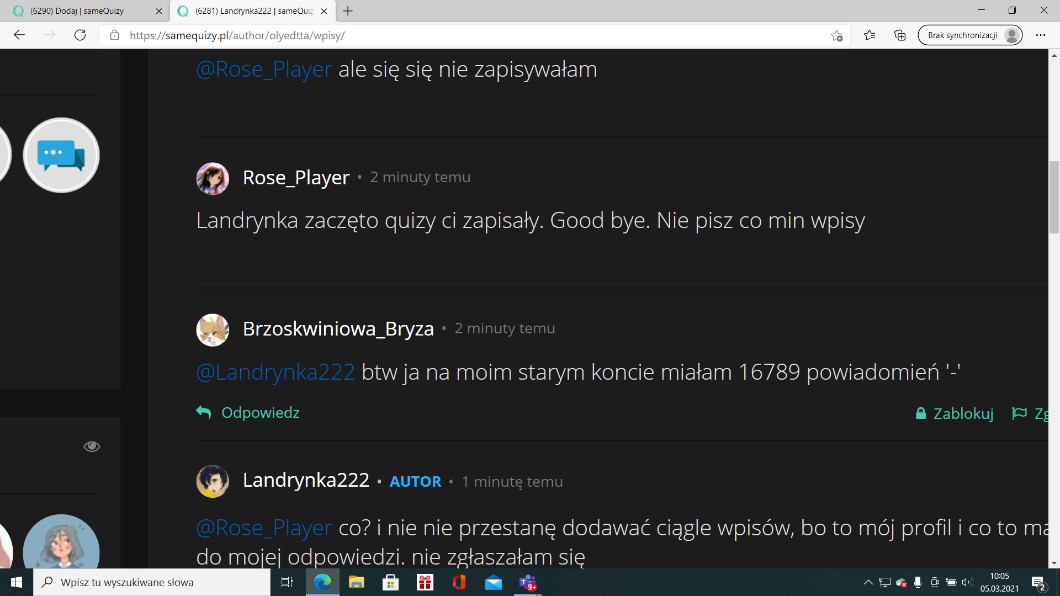 • AUTOR@Rose_Player co? i nie nie przestanę dodawać ciągle wpisów, bo to mój profil i co to ma do mojej odpowiedzi. nie zgłaszałam się