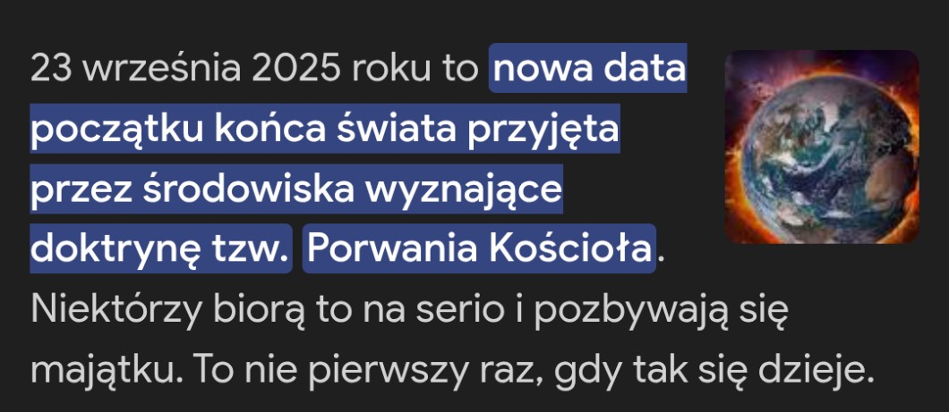 Jeszcze wpisywali w google "kiedy bedzie koniec swiata?" i im mowili ze w 2025