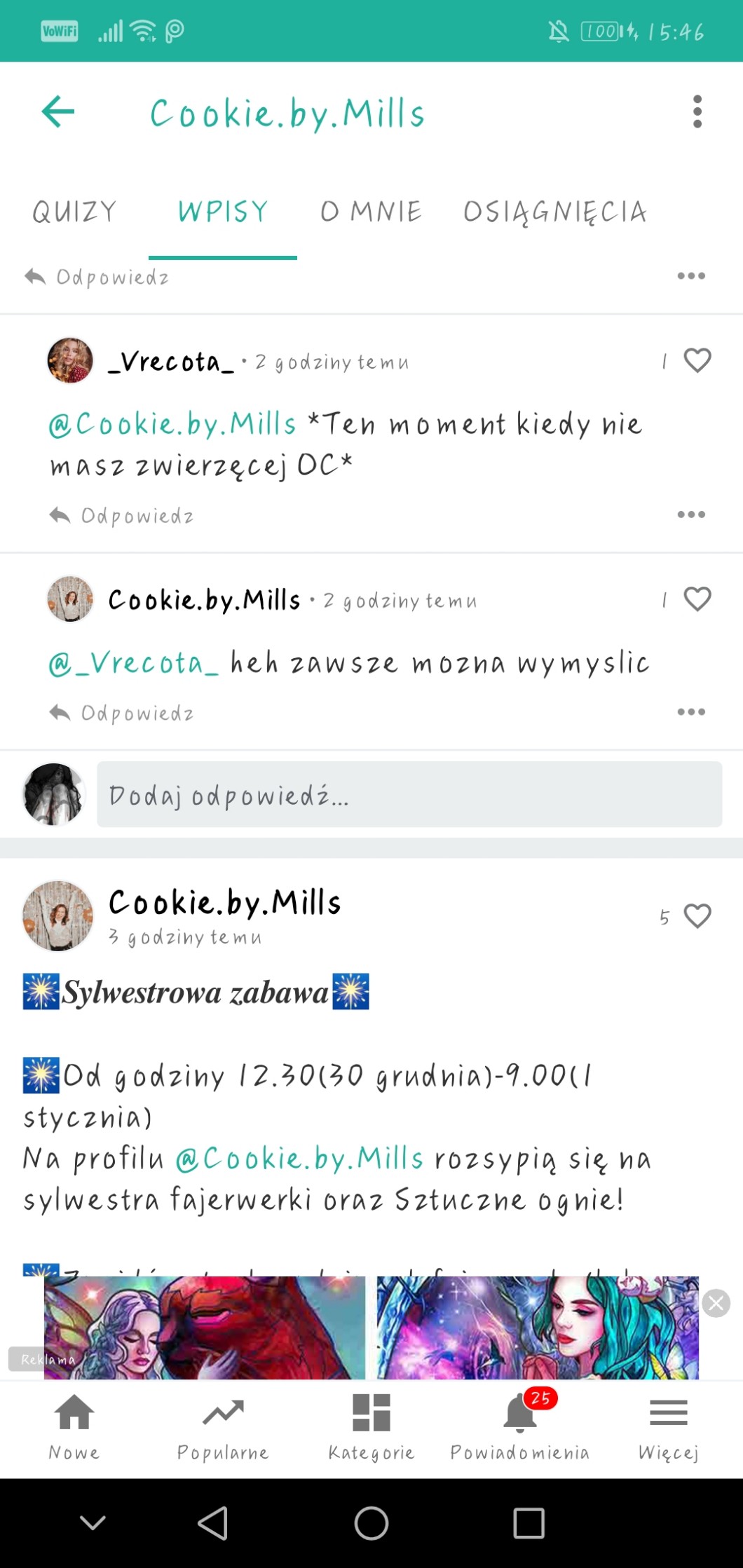Przy pomocy wpisów możesz zadać autorowi pytanie, pochwalić go, poprosić o pomoc, a