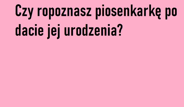 Hejka! Rozpoznaj piosenkarkę po dacie jej urodzenia! Życzę powodzenia! (wiem że jedna dziewczyna zrobiła podobne, ale ja będę robiła polskie piosenkarki, a ona, robiła angielskie.