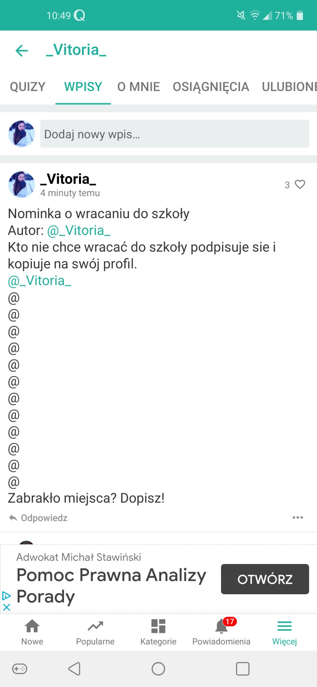 Przy pomocy wpisów możesz zadać autorowi pytanie, pochwalić go, poprosić o pomoc, a
