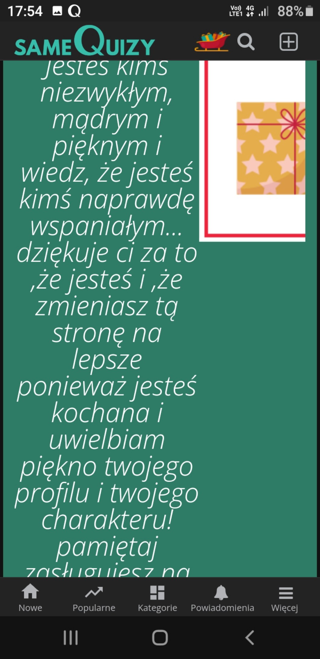 AUTOR•Wczoraj miałam bardzo słaby internet, więc nie mogłam wejść na SQ przez przeglądarkę i zobaczyć wszystkie Wasze prezenty, ale teraz mi wreszcie się to udało i jest mi tak miło! 🥰 Dziękuję Wam moi Kochani za wszystkie te prezenty, naprawdę nie spodziewałam się, że dostanę tyle prezentów z na tyle ciepłymi słowami! Kocham Was! 😘❤️❤️❤️