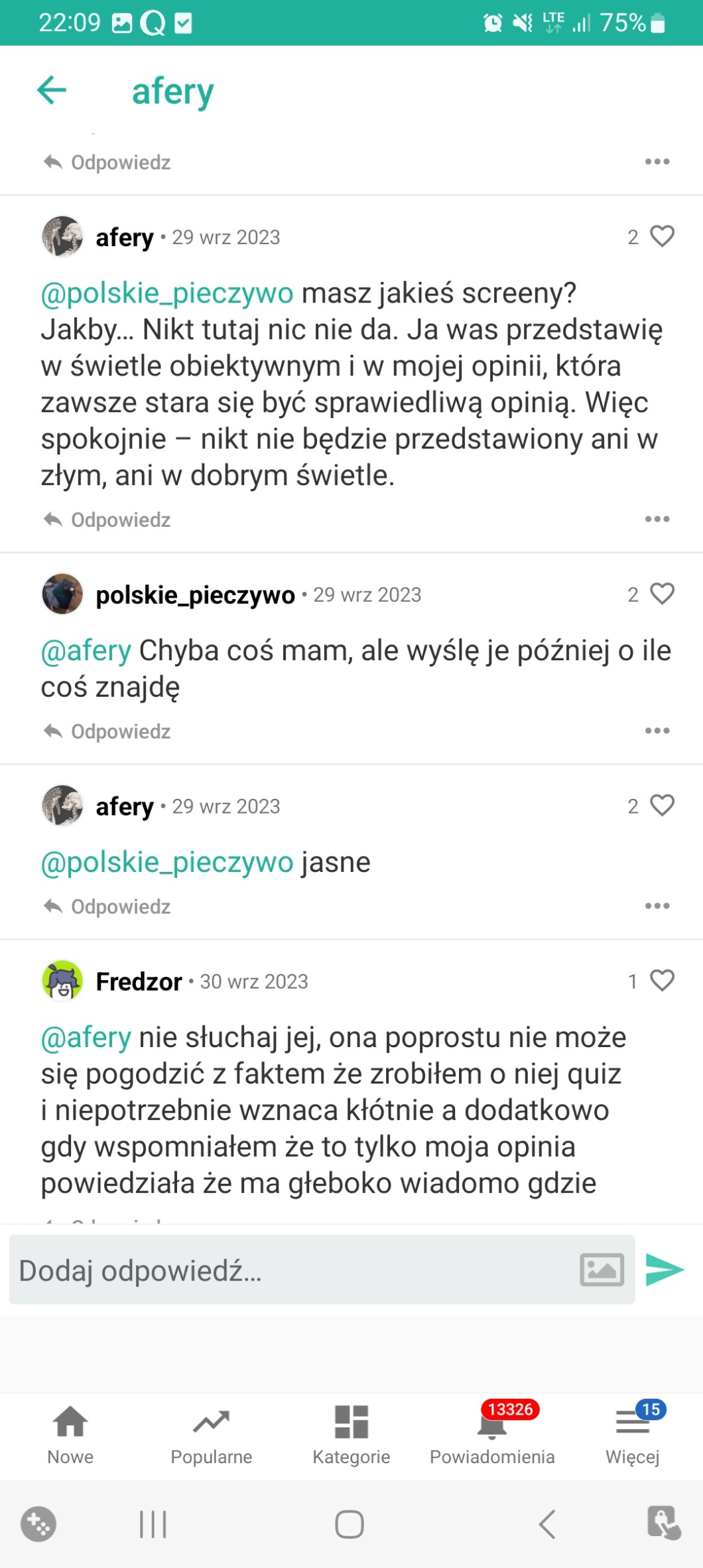 15 nieodczytanych wiadomości.