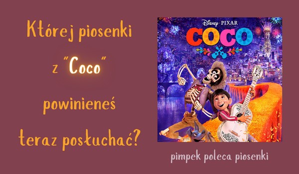 Jest środa, więc… "Której piosenki z 'Coco' powinieneś teraz posłuchać?" już zostało opublikowane. Oglądaliście 'Coco'? Ja zobaczyłam to w całości dopiero w lipcu. Akurat leciało w telewizji. Jestem absolutnie zachwycona, nie mam pojęcia, ile razy płakałam.