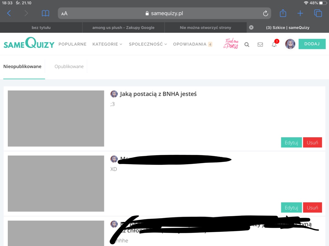 Zrobiłam, zapraszam was: https://samequizy.pl/author/hamsterka/. I zapraszam do followu oraz serc :3