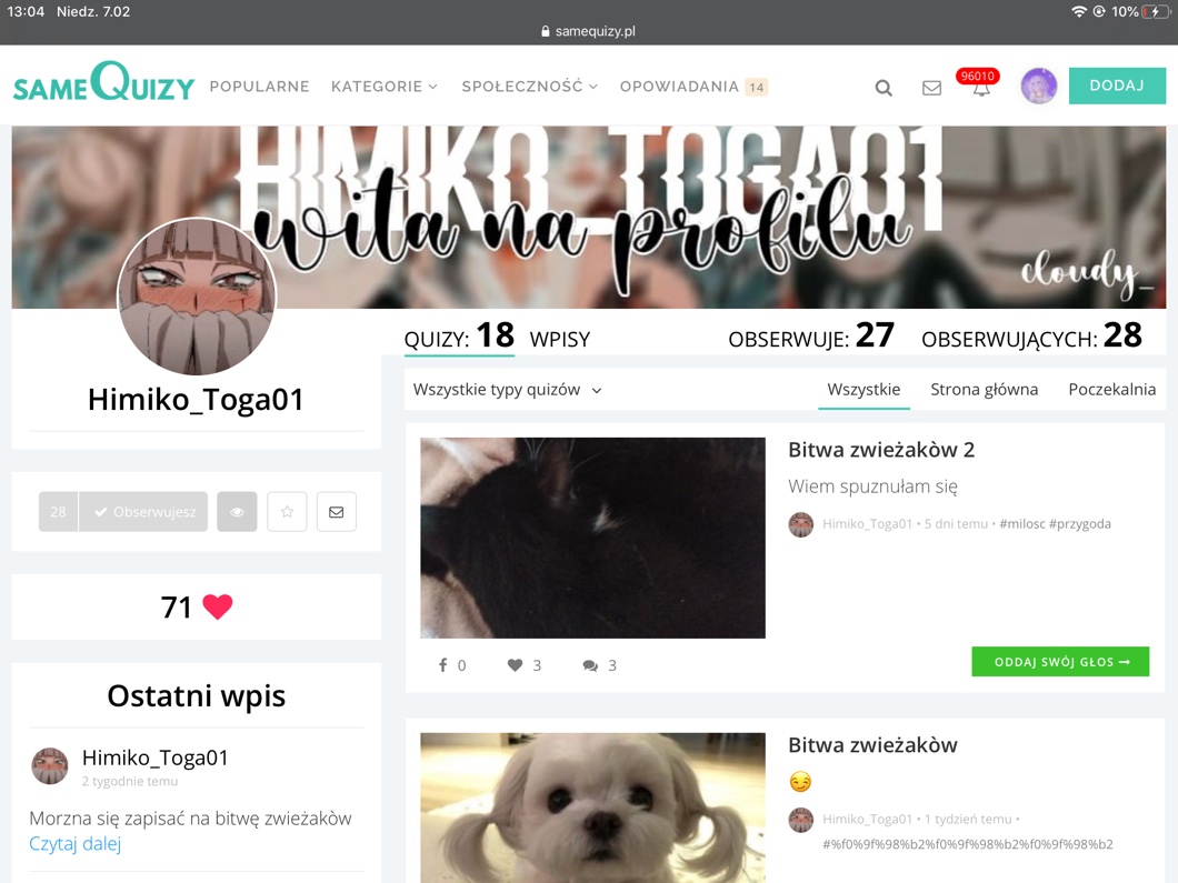 Przy pomocy wpisów możesz zadać autorowi pytanie, pochwalić go, poprosić o pomoc, a