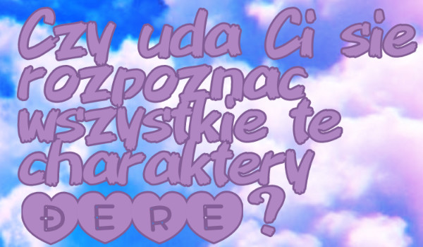 Grzego Czy uda Ci się rozpoznać wszystkie te charaktery dere? Czy uda Ci się rozpoznać wszystkie te charaktery dere z pomocą krótkiego opisu? Sprawdź! Grzego • 5 lat temu • #bakadere #czyrozpoznaszz #dandere #dere #deredere #hajidere #himedere #kamidere #kuudere #mayadere #onidere #sprawdz #tsundere #undere #yandere #yangire 8 4 Rozpocznij quiz