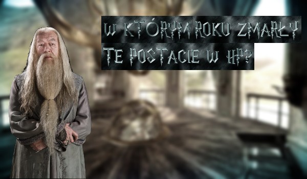 Przemek_Bielawski W Którym Roku Zmarły Te Postacie W Harrym Potterze? Czy Wierz Kiedy Zmarły te Postacie? Przemek_Bielawski • 7 lat temu • #bitwaohogwart #dumbledore #harrypotter #smierc #wierzaastronomiczna 1 2 Rozpocznij quiz