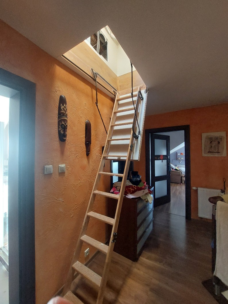 Co tam u was? Mam dla was ✨StOrYtAjMa✨o tym, jak utknęłam na strychu. Nigdy nie widziałam naszego strychu a tata chował tam ozdoby choinkowe i było otwarte a tam była taka drabinka (zdjęcie). Noi ja postanowiłam że tam wejdę. Wlazłamwięc i tam było tak: trochę odstępu od drabinki i mikropomieszczenie z niskim sufitem (takim że ledwo karton się mieścił). I ja schylona przeszłam z tej drabinki do tego pomieszczenia i się rozglądam i planuje zejść. Odstępokazał się za wielki a miejsca było za mało na jakikolwiek obrót i utknęłam😆. Moja pierwsza reakcja? "Mamo tato utkęłam na strychu!" po pewnym czasie przychodzą, mojasiostra za nimi i co robią? Śmieją się. Później tata dał mi instrukcje. Najgorsze w tym wszystkim było to, że z boku drabinki było okno i mi świeciło słońce prosto w ryj. Wkońcu po jakichś 20 minutach się wygramoliłam😂😂😂.