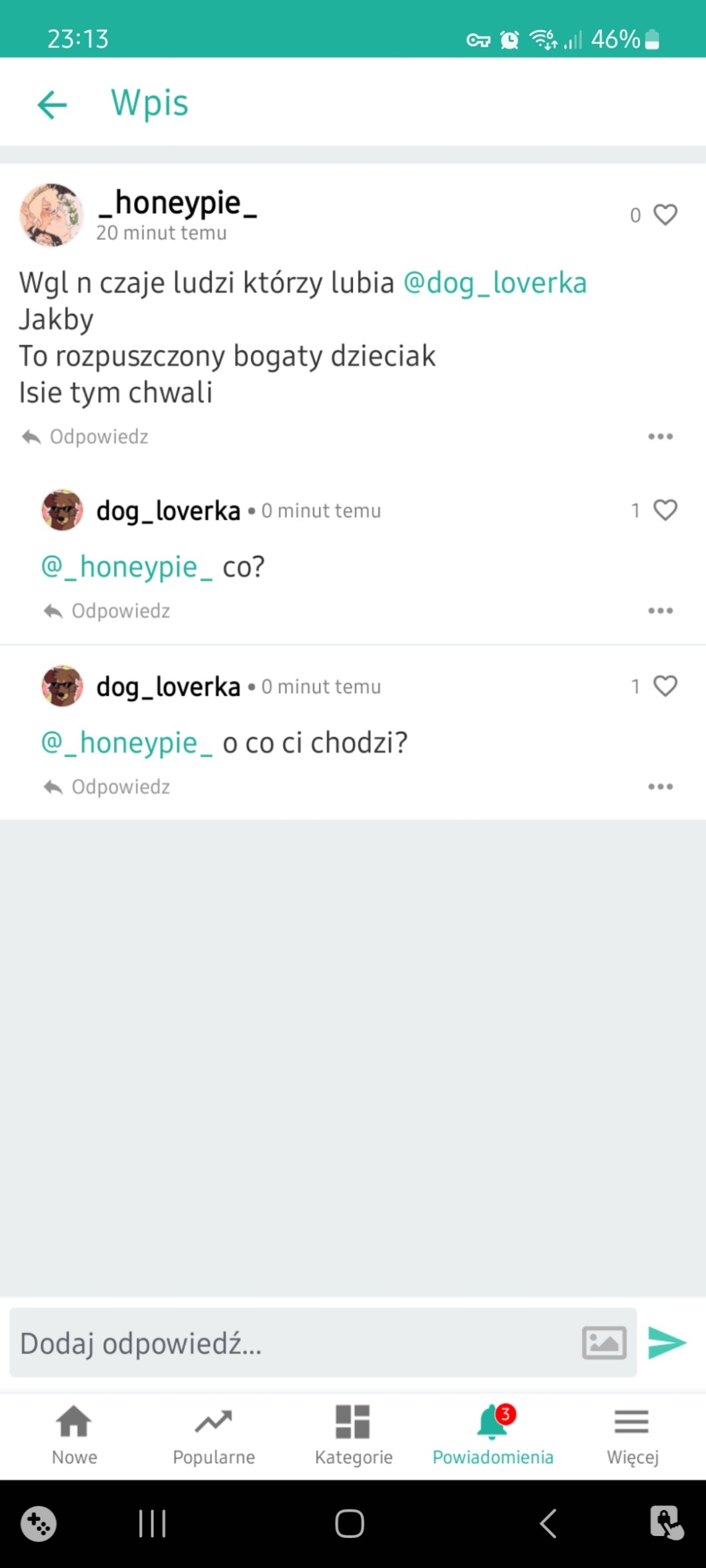 Przy pomocy wpisów możesz zadać autorowi pytanie, pochwalić go, poprosić o pomoc, a