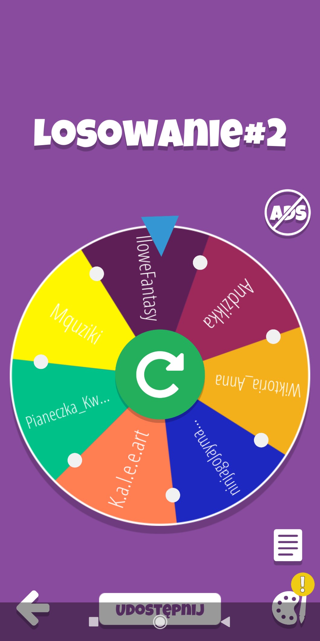 AUTOR•Okej, już przygotowałam koło losujące. Zaczynamy losowanie.