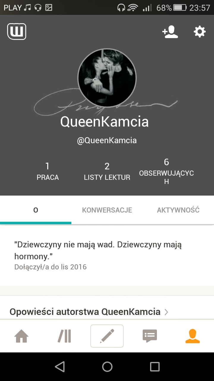 Chciałam też wam powiedzieć o moim koncie na wattpad’ie. Chciałam spróbować swoich sił i długo się zastanawiałam nad tym i w końcu jakoś tak przyszło.