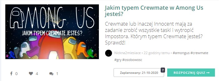 Właśnie robię quiz o Among Us