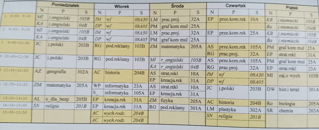 Oto plan lekcji mój: