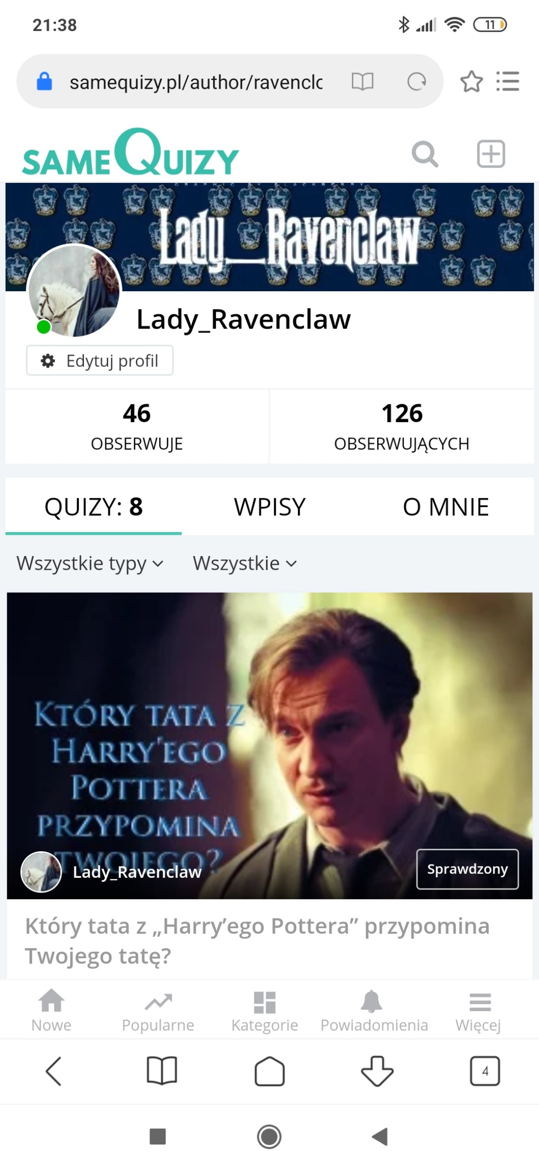 Właśnie wstawiłam nowy quiz, więc wbijać tutaj https://samequizy.pl/ktory-tata-z-harryego-pottera-przypomina-twojego-tate/
