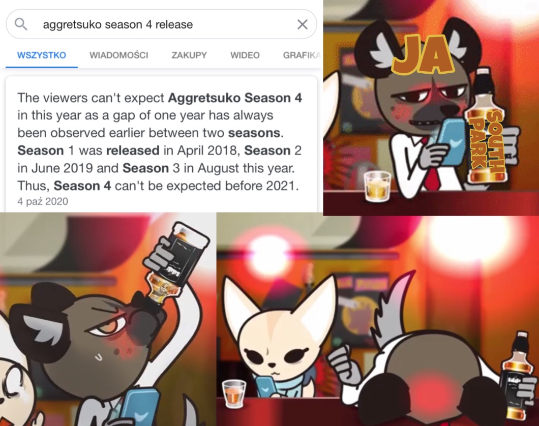 💛 (TU BĘDĘ GADAĆ O NICZYM XD) Oglądał ktoś anime „Aggrestuko”? Ja oglądam od kilku dni i teraz mocno się wciągnęłam – Głównie dlatego, że jeśli chodzi o seriale z jakimiś związkami, głównie animowane, to mocno się wkręcam. A tam? Tam jest tego mnóstwo. Właściwie, to to jest najlepsze anime jakie oglądałam (oglądałam tylko Pokémony i Little Witch Academia więc no -w-). Od razu tylko mówię, że jest 13+ (Czasami przeklną, alkochol itd.). Kilka pierwszych odcinków jest nudnych, ale i tak wciąga ._. Jeśli kogoś interesuje, to jest na Netflixie. I jeszcze jedno…