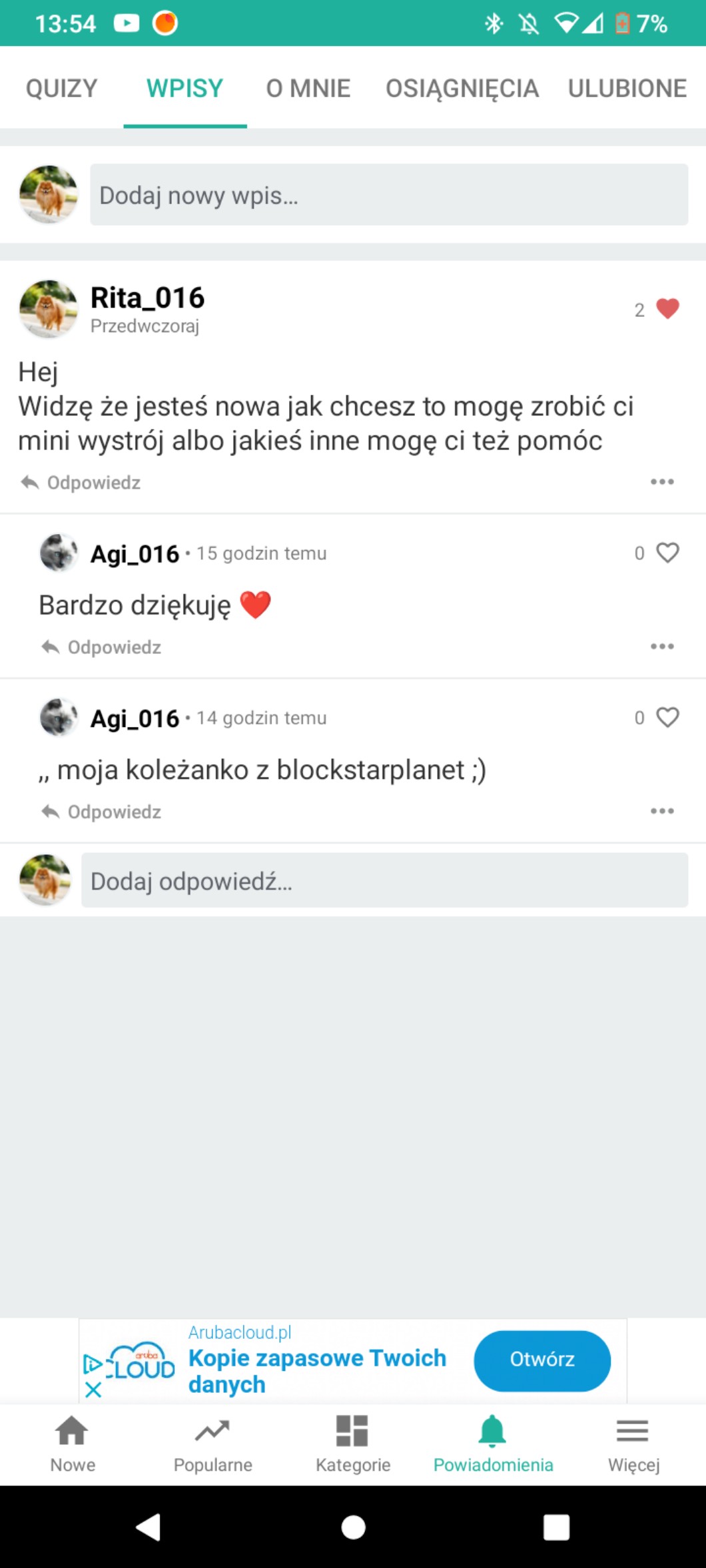 Przy pomocy wpisów możesz zadać autorowi pytanie, pochwalić go, poprosić o pomoc, a