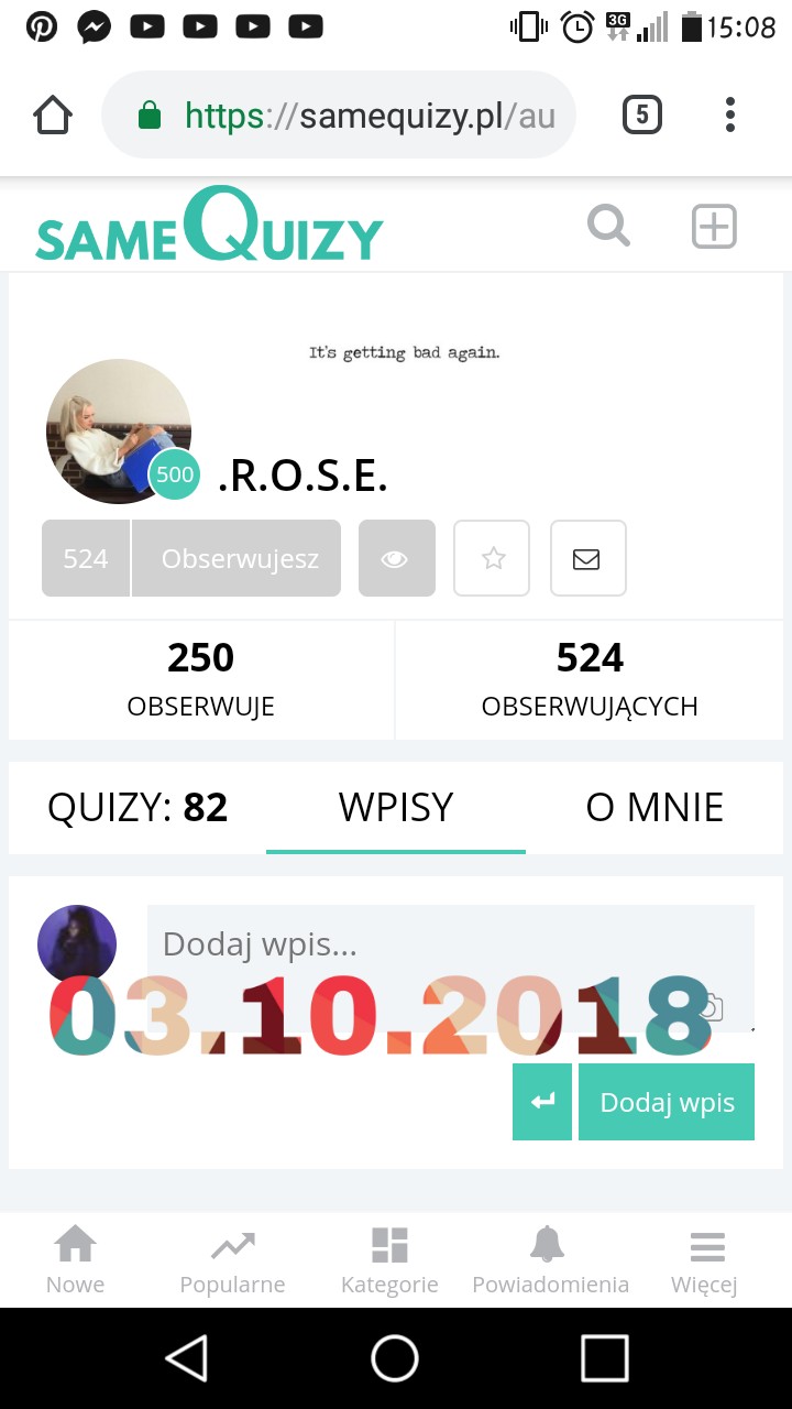 Wiesz co? Jestem z Ciebie strasznie dumna, widząc ile już osiągnęłaś. Dopiero cieszyłaś się 50 obserwatorami, a teraz już za chwilę 700💖 przegoniłaś mnie, mówiłam Ci! Widzisz? Miałam rację! I strasznie się cieszę, że tak szybko zblizasz się do tysiąca. Gratuluję Ci i życzę dalszych sukcesów 💖💖