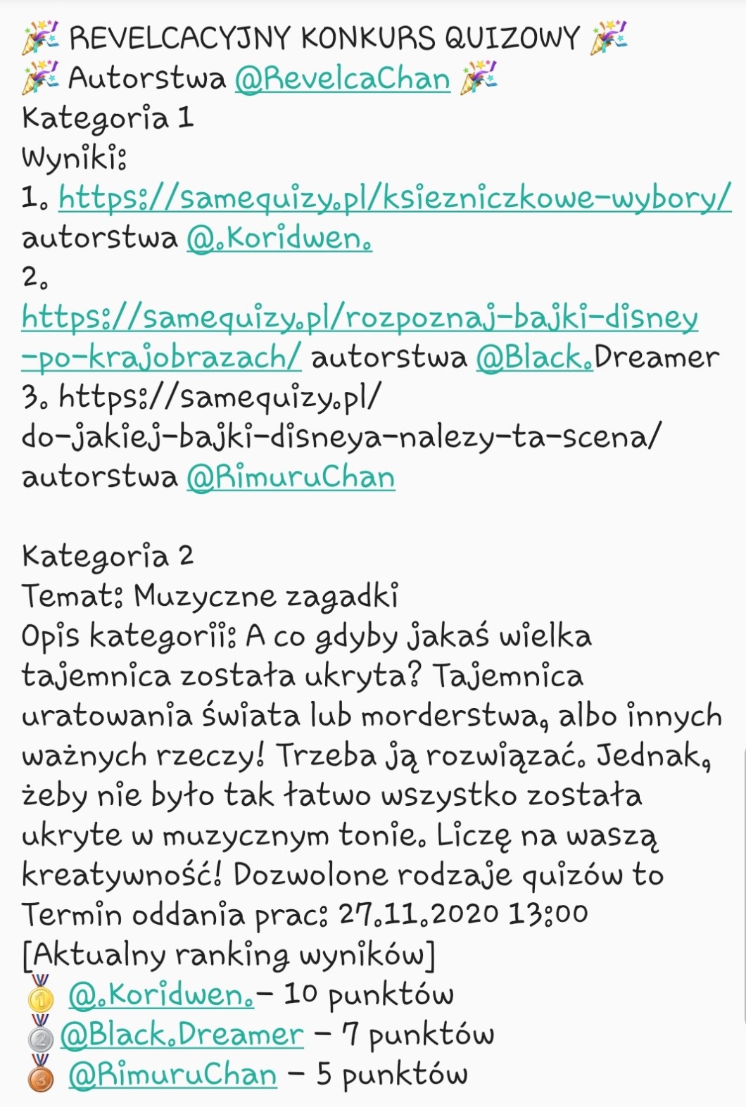 Linki do quizów przyjmuję pod tym wpisem oraz nie będę oceniać quizów nir na temat.