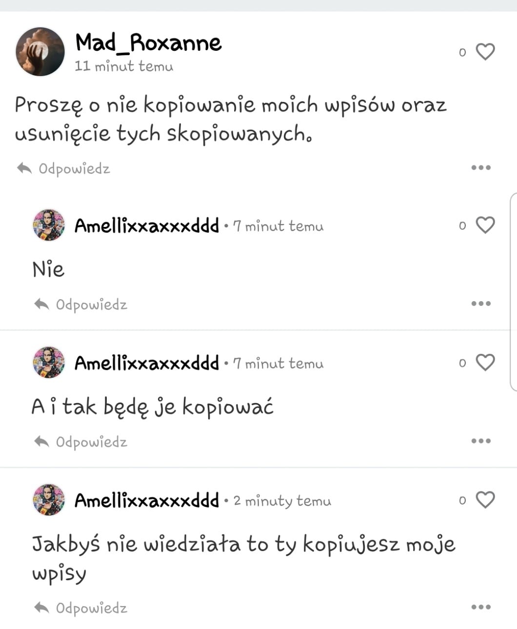 @Mad_Roxanne to bardzo dziwne 🤣 rozumiem kopiowanie quizów ale wpisy? Tylko to trochę chamskie i wredne.