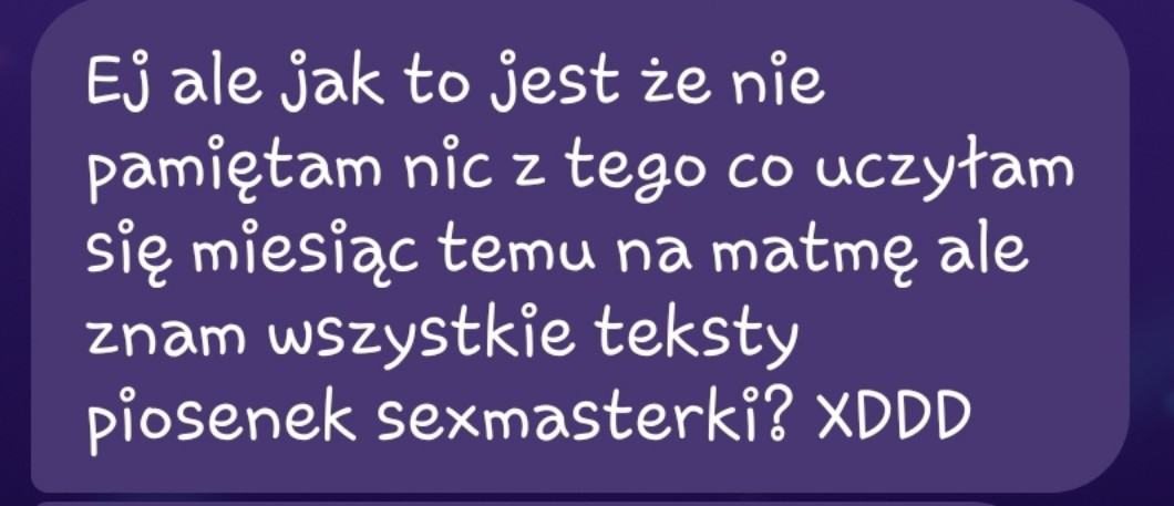 Ja nigdy jej nie słuchałam ale przez to ile ludzi to słuchało to przez przypadek też zapamiętałam te teksty xD
