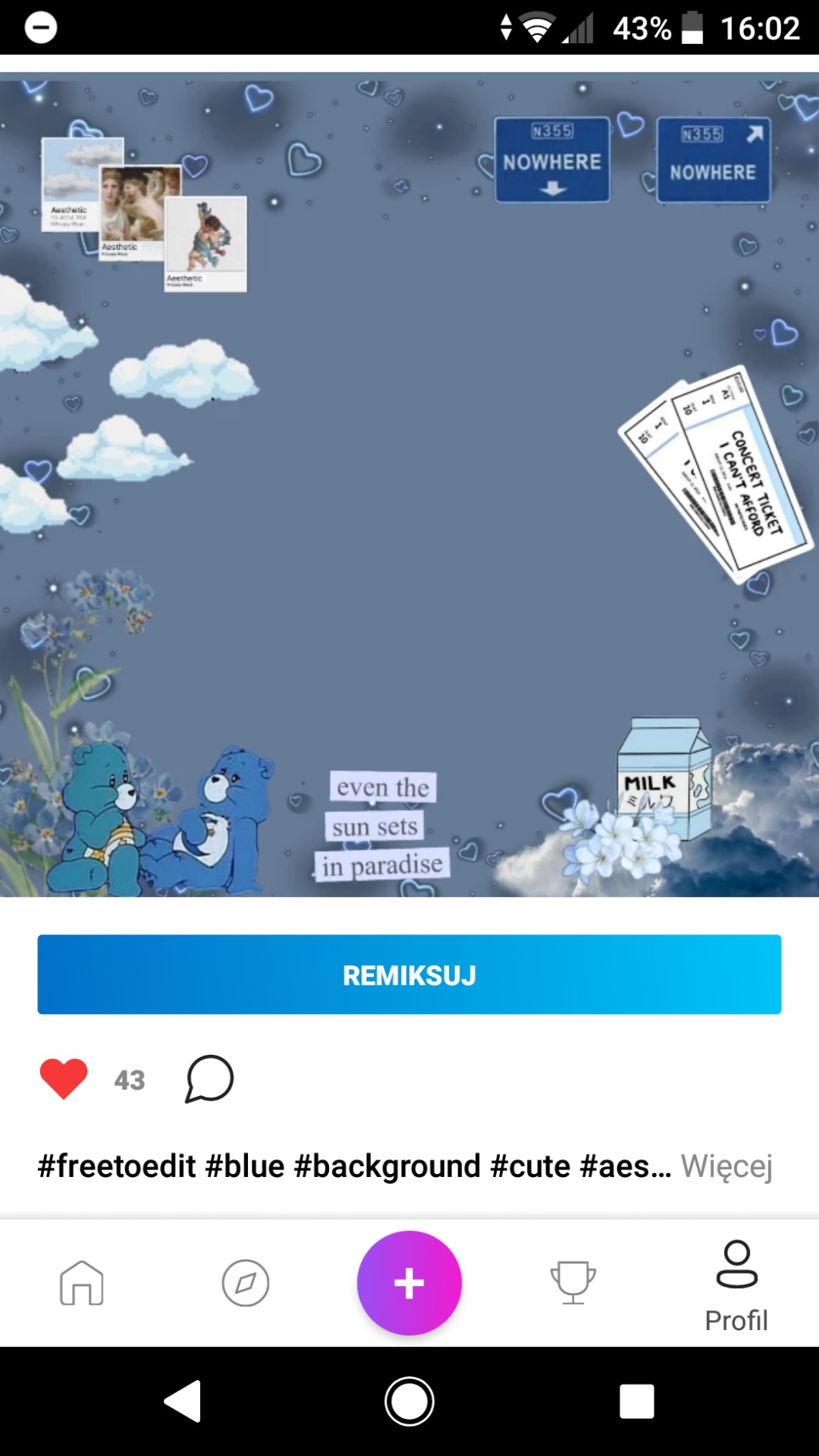 AUTOR•Jak wieta tworzę grafiki na picsart no i jako że nie byłam tam kilka dni to było 90 no i spk. Wchodzę i patrzę na moją jedną grafikę i takie