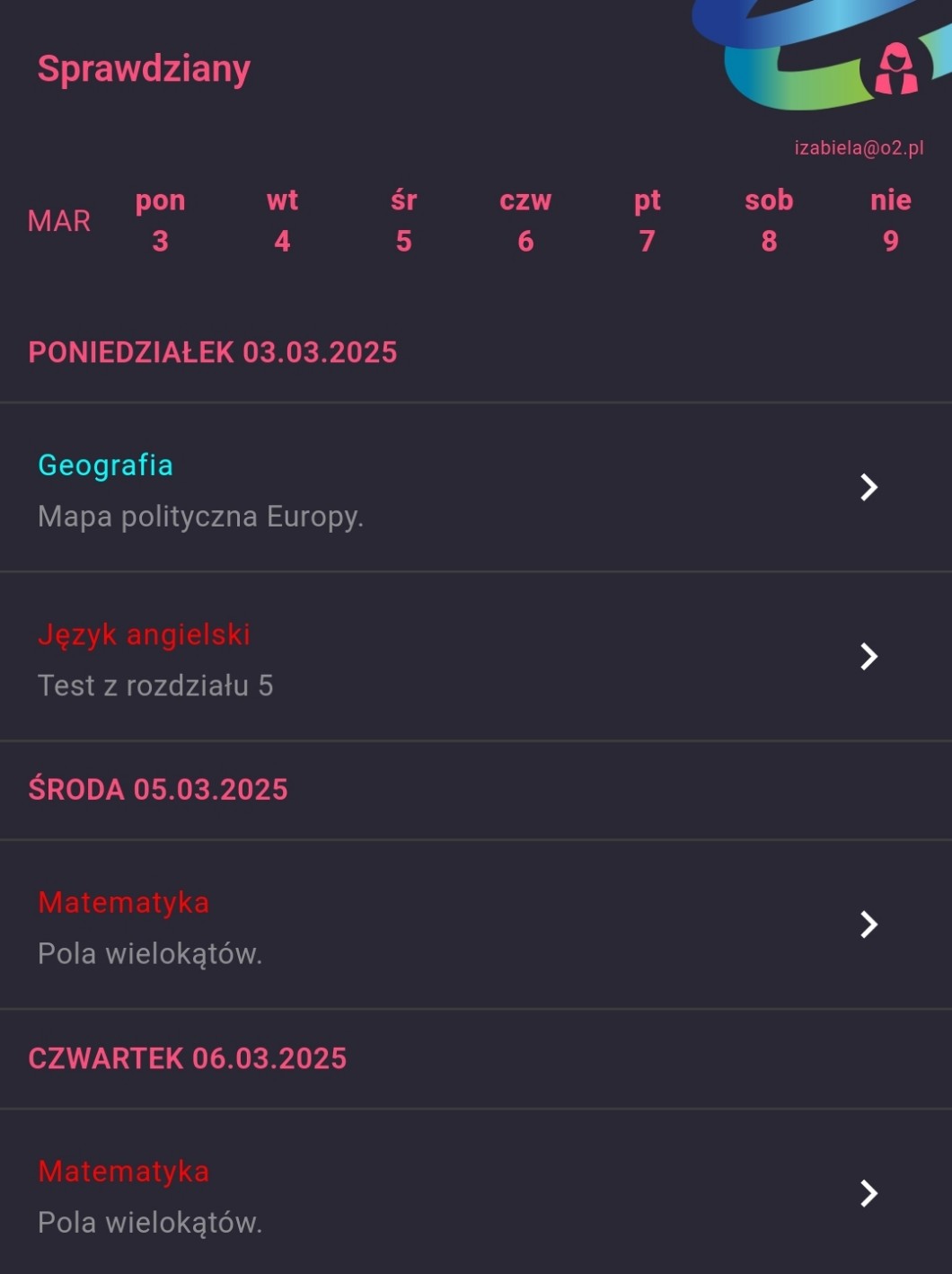 @melodii. Ja mam dzisiaj sprawdzian z matmy, a w piątek z fizyki, jutro projekty z chemii i biologii
