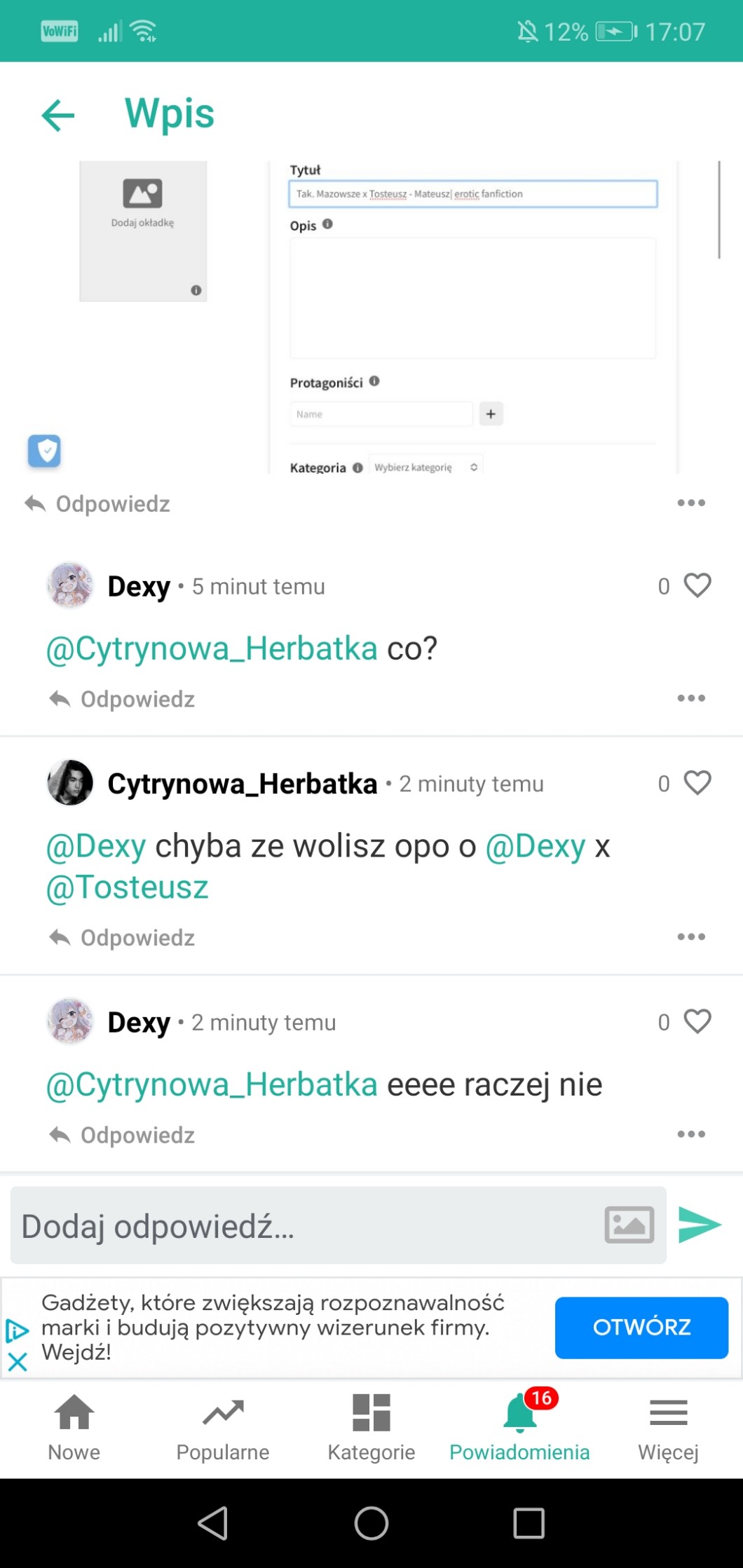 Przy pomocy wpisów możesz zadać autorowi pytanie, pochwalić go, poprosić o pomoc, a