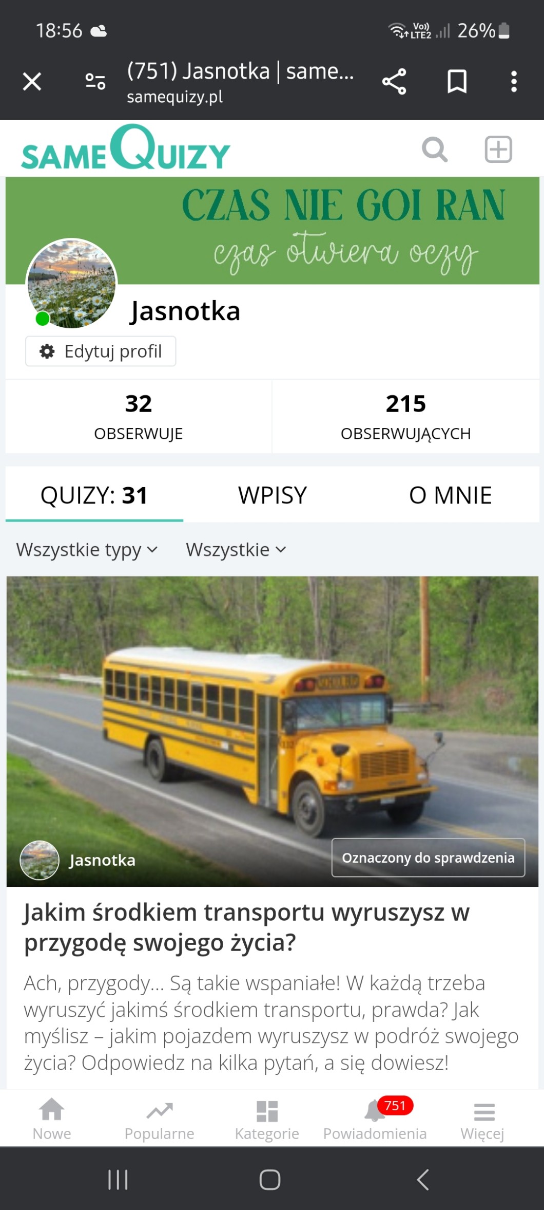 —> Jak większość z was Zauważyła mój quiz trafił na SG i kolejny jest oznaczony!