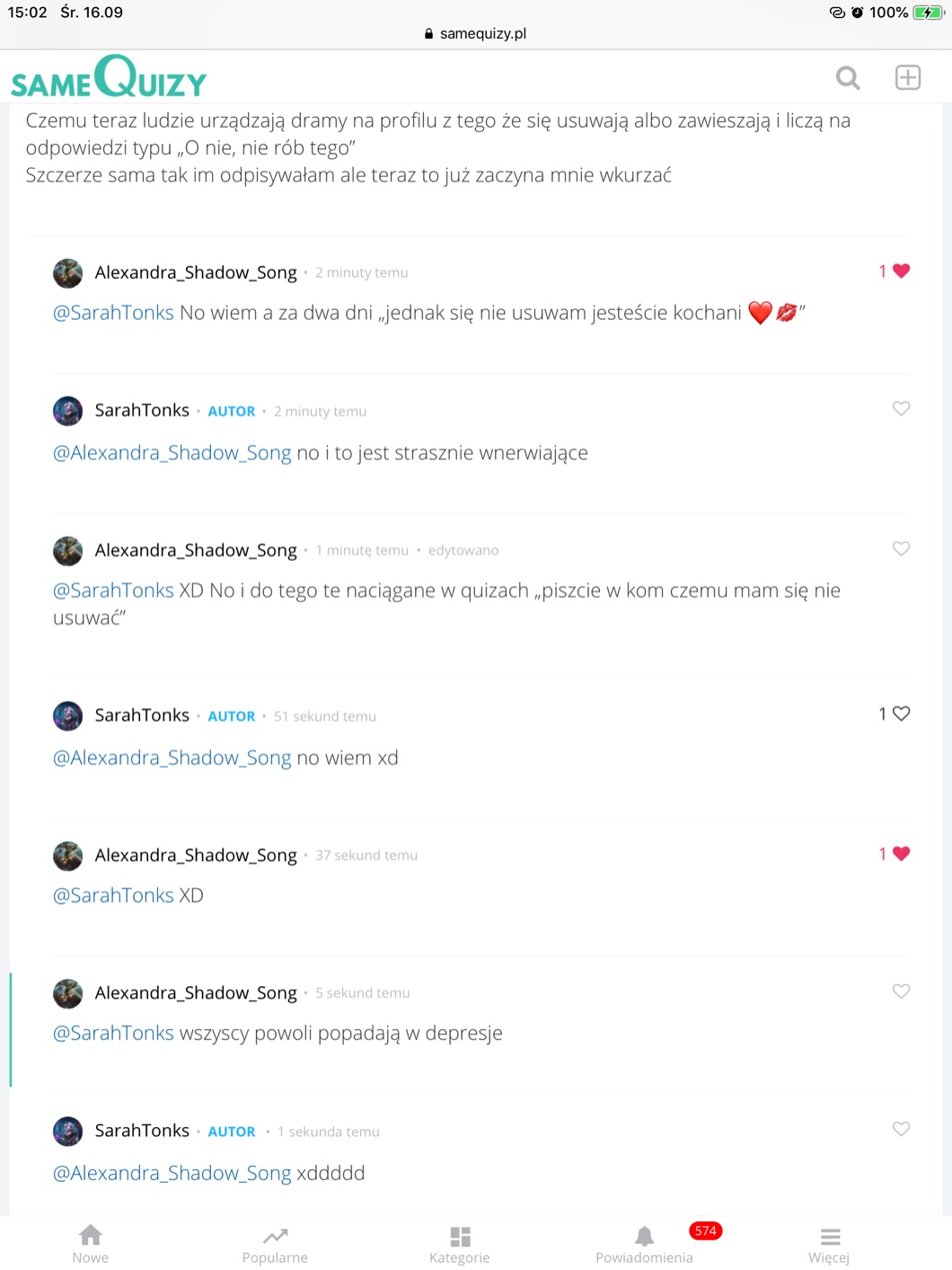 Więc teraz serdecznie zapraszam do moich ulubionych. Quizów i autorów. Tam jest pełno świetnych autorów i quizów!