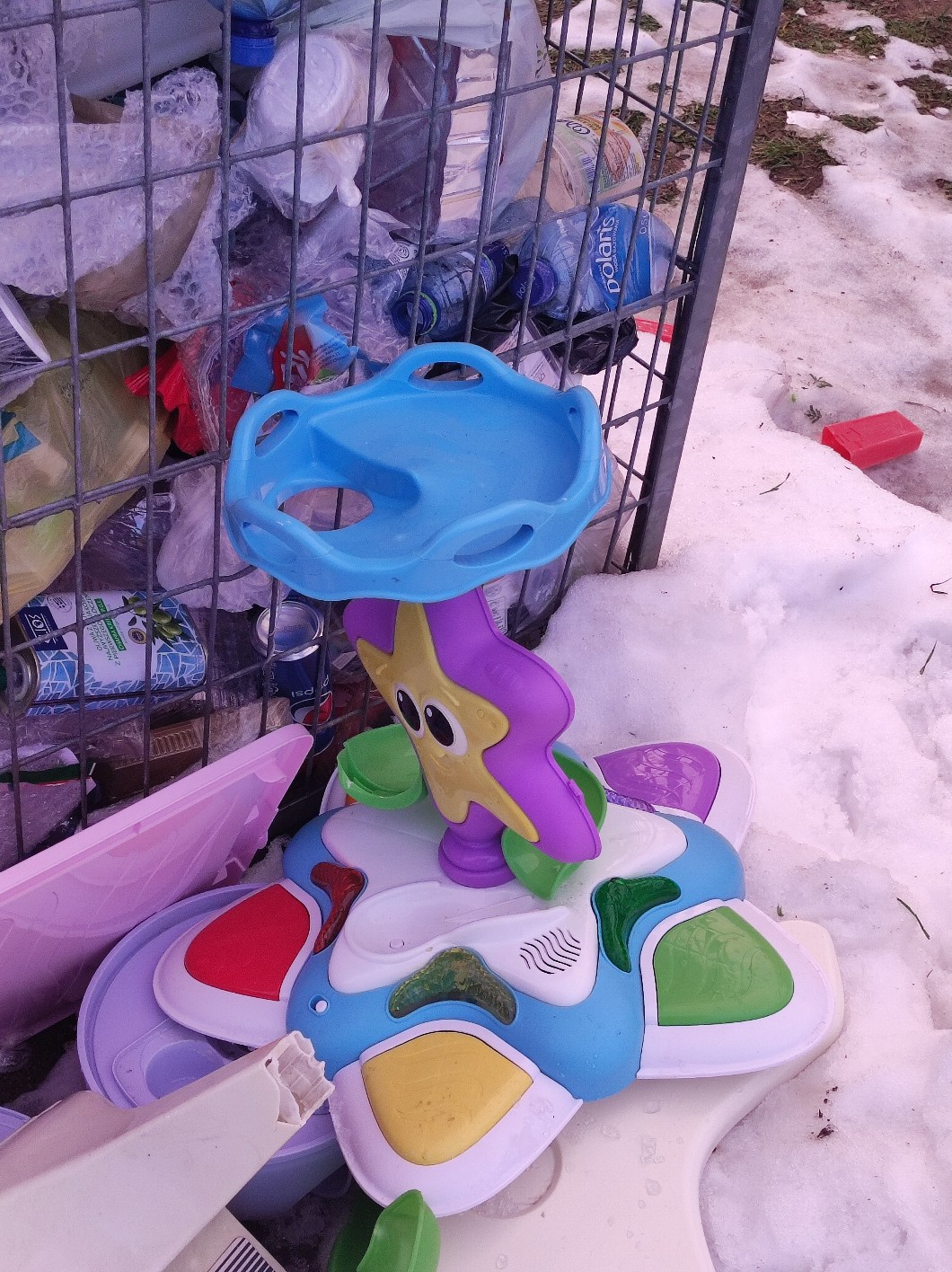 Byłam z @Mikyuki na spacerze z psem. Podchodzimy koło jakiegoś śmietnika. Zauważyłyśmy jakąś dziwną zabawkę dla dzieci (tą na zdjęciu). Oczywiście musiałam sprawdzić czy działa. Stanęłam nogą na jeden z tych kolorowych przycisków i zaczęła grać z tego muzyka. Nie wiem czemu, ale zaczęłyśmy się z tego śmiać i dla zabawy naciskałyśmy wszystkie te guziki. To dowód na to, że mentalnie mam o 10 lat mniej niż w rzeczywistości.