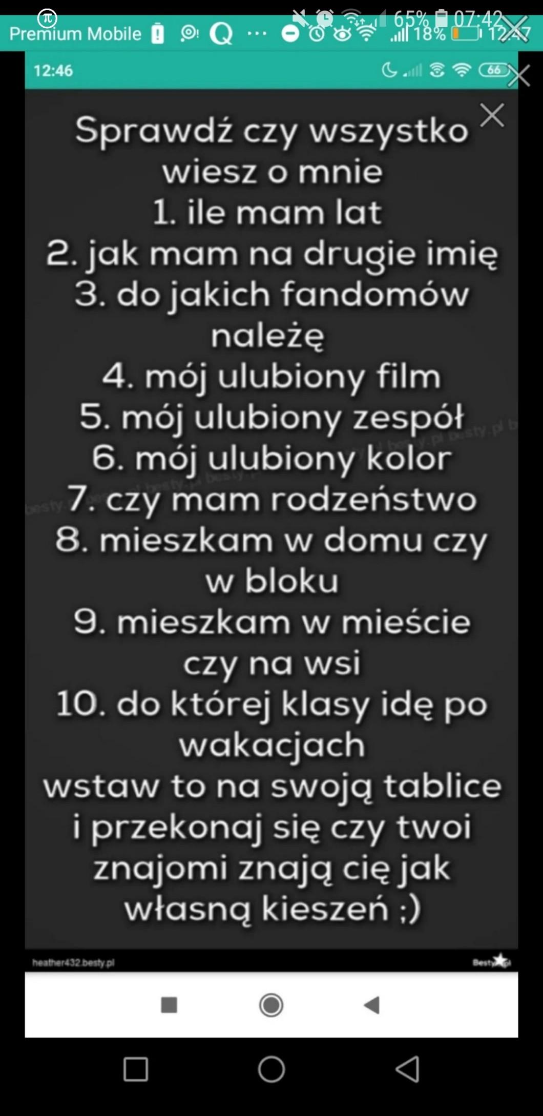 A do wszystkich, jeśli czytaliście moje Q&A, to powinniście sobie poradzić. Opowiedzcie na wszystko, oprócz 5. Nie pamiętam, czy była mowa o 2, więc też nie musicie. DOBRANOC ❤